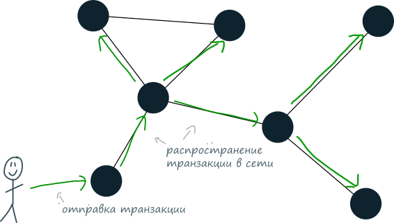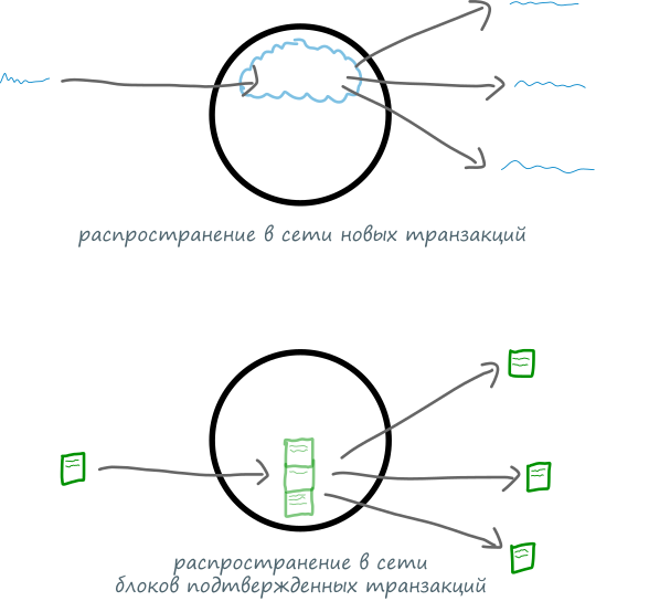 Основная работа узла заключается в обмене информацией с другими узлами, и квинтэссенцией информации, которую узел передает, являются транзакции.