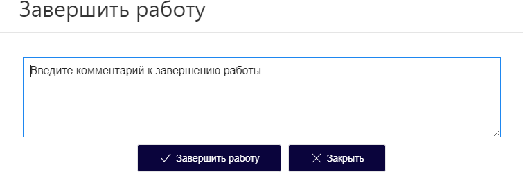 Необходимо ввести комментарий по результатам выполнения работы и нажать на кнопку «Завершить работу». Документ двинется на следующий шаг маршрута.