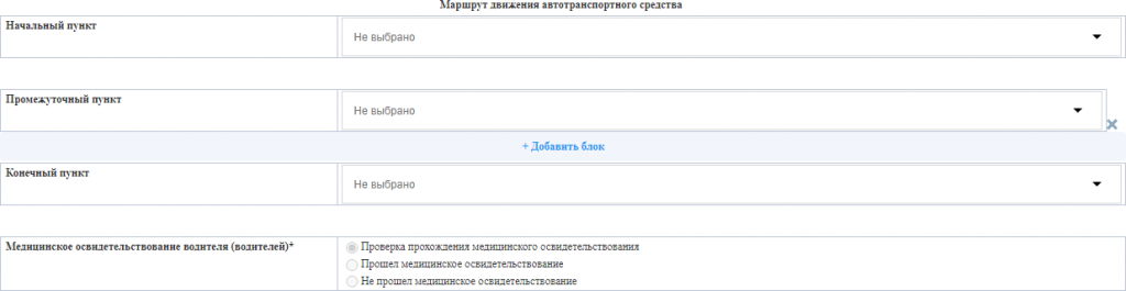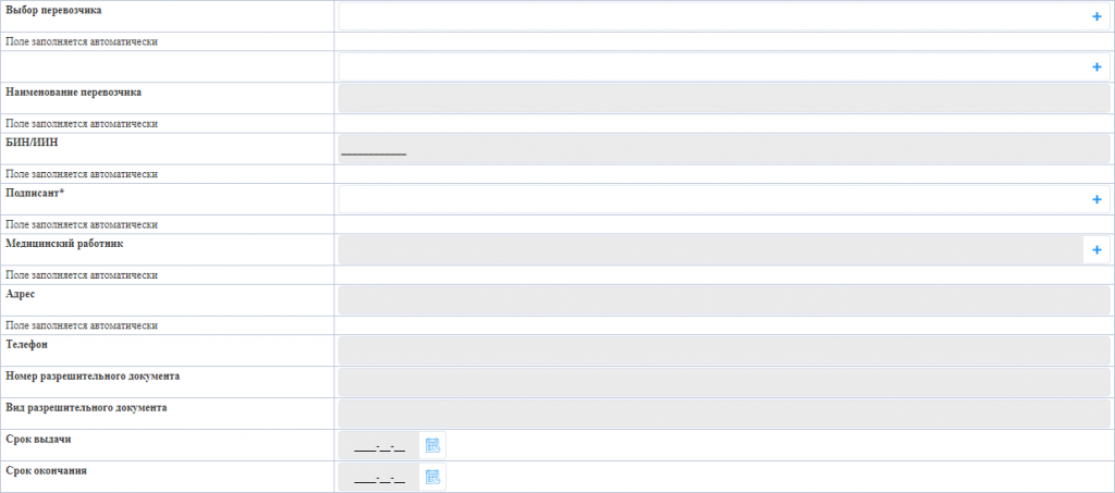 Поле «Медицинское освидетельствование водителя (водителей)» будет автоматически заполняться системой.