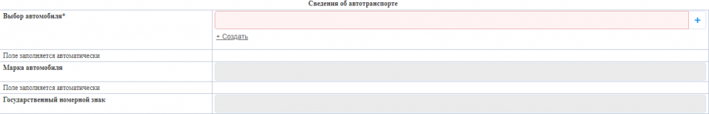Заполняем поле «Выбор автомобиля» значением из реестра грузовых автомобилей. Все остальные поля заполнятся автоматически после выбора, данными из выбранного автотранспорта.