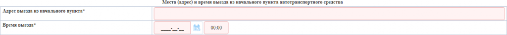 Необходимо вручную заполнить поля «Адрес выезда из начального пункта» и «Время выезда».