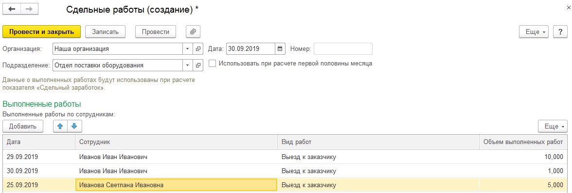Программой будет выполнен расчёт в соответствии с указанными расценками и объёмом работ для каждого из сотрудников по отдельности.